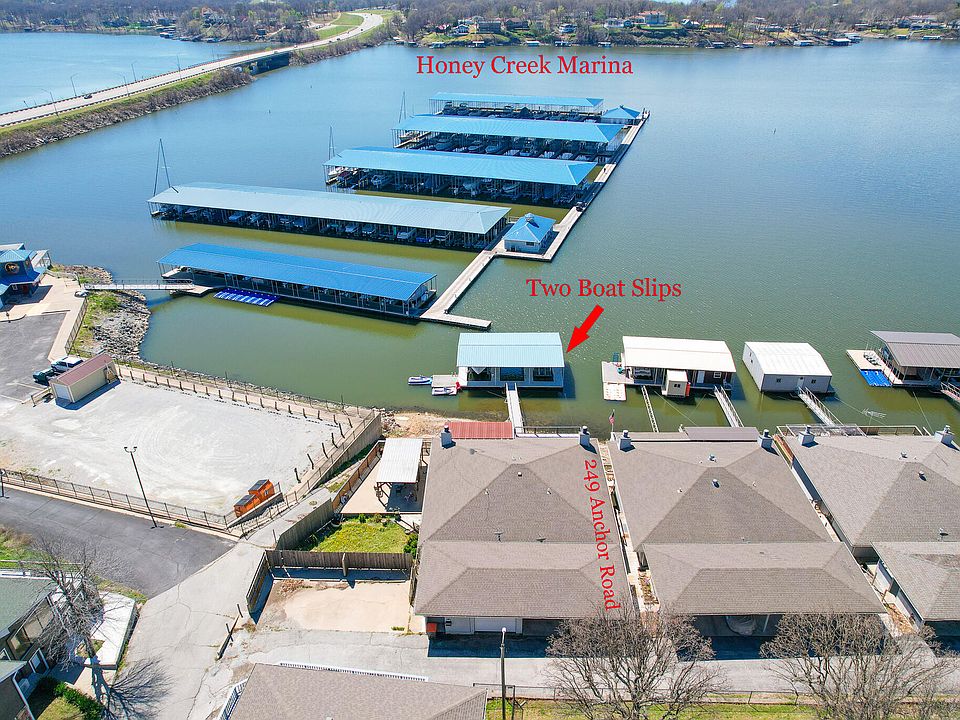 Rentals allowed for both the Home and Boat Slips. Versatile Living Space. Walls of Windows. Views with large Decks from both levels overlooking Beautiful Grand Lake! TWO Boat Slips w/Lifts. 12x30 & 10x30.