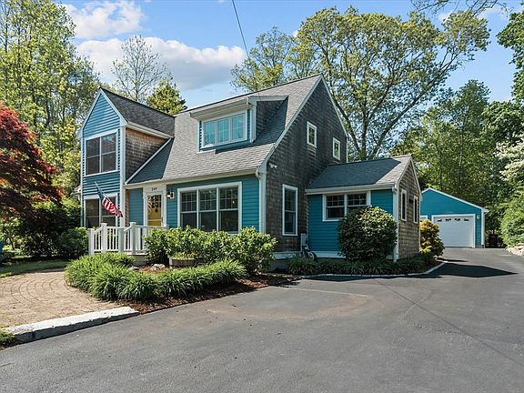 Welcome Home! Down a tree-covered driveway sits this bright 3 bedroom 2.5 bathroom expanded Cape. Completely rebuilt and enlarged in 2004, this charming home has a unique open floor plan including an inviting kitchen with all new one year old stainless steel appliances and a spacious living room with beamed ceiling, many built-ins, window seat and a cozy gas fireplace. Primary bedroom upstairs has space for office and en suite bathroom. Lot is over an acre of rolling lawn, relaxing fire pit, trail through woods leading to Lily Pond, and an oversized 2 car garage built in 2019. Just as perfect for a family with room to run or a retired couple with lots of grandkids and a passion for gardening. This quintessential Cohasset retreat also has a large deck overlooking the expansive backyard and vegetable garden. A Must See!