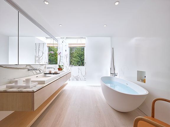Floor-to-ceiling glass windowsIncredible natural lightCustom luxury detailsLarge jacuzzi hot tubWood-burning fireplaceSpacious upper-and-lower level decksWood flooring