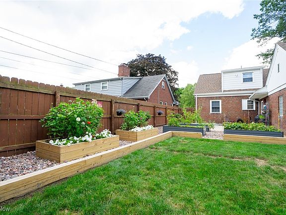Outdoors, enjoy a private backyard retreat with raised garden beds, a walled side patio, a rear concrete patio, and a large shed. The attached two-car garage adds everyday practicality. Recent updates include a newer electrical panel and a furnace (2023), while elegant marble window sills provide refined finishing touches throughout.