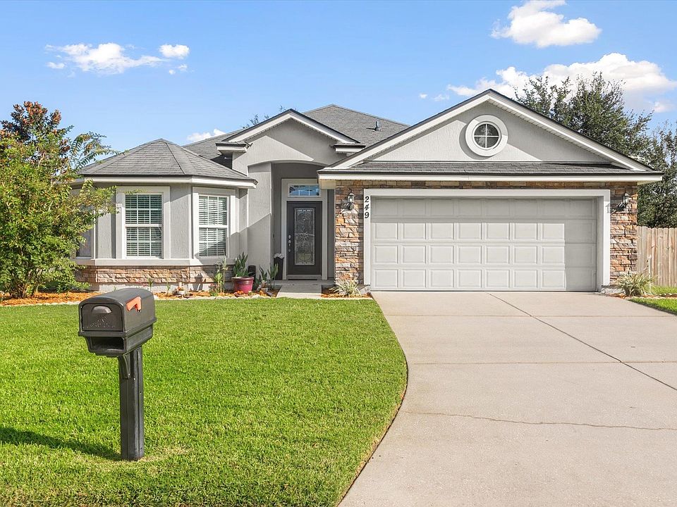 Welcome to 249 Bridgeport Lane, a charming 3-bedroom, 2-bath home offering comfort, functionality, and modern touches in a sought-after Elkton community. With 1,681 square feet of living space, this residence features an inviting open floor plan that seamlessly connects the living, dining, and kitchen areas—ideal for both entertaining and everyday living. The kitchen is equipped with ample cabinetry, sleek counters, and a breakfast bar for casual dining. The primary suite provides a private retreat with generous closet space and an en suite bath and shower, while two additional bedrooms offer flexibility for other house members, guests, or a home office. Step outside to a screened patio flowing to a spacious fully fenced backyard overlooking a serene pond. This is perfect for outdoor gatherings, gardening, or simply relaxing. With its thoughtful layout, desirable location, and timeless appeal, this home is ready to welcome its next owner. The lot adjacent to the property is owned by current owner and neighboring owner. This ensures no other structure will be built next to this property.