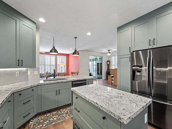 This Henderson gem offers the magic four: Pool & Spa, Full RV Parking with Hookups, Multi-Gen Layout, and a rare 3-Car Garage with a Pull-Through Bay—plus an EV charging outlet! Inside is a stunning new kitchen featuring semi-custom flush cabinetry, modern finishes, and ample storage space. Flexible living options abound with generously sized bedrooms and a large loft perfect for a playroom, media room, or home office. Open House