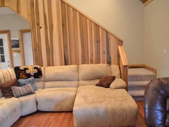 Welcome to the country! Nice homes on the road leading up to this private home with no neighbors behind the residence. Large level yard, with gently rolling pasture land behind in the desirable Sumrall School District. Property is on the south side of 98, outside Bellevue area. Home has soaring shiplap wood ceiling, open concept showcasing a beautiful kitchen with tobacco stained cabinetry and large island with nice granite. Upstairs playroom could be easily converted into a 4th bedroom if needed. Bonus room is being used as a bedroom. Two bedrooms down, play area is upstairs.