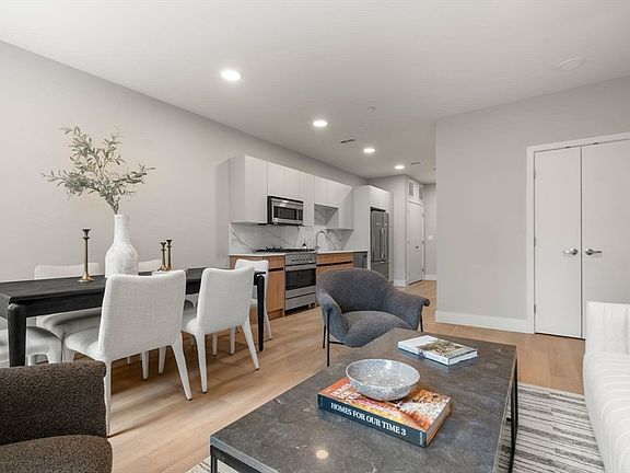 Experience refined living at The Jordan, ideally located near the Brookline town line in vibrant Brighton. This two-bedroom plus den corner residence boasts expansive triple-pane windows, open-concept living, dining, and kitchen areas with natural light and sweeping views. The modern kitchen features sleek quartz countertops and premium Fisher & Paykel stainless steel appliances, perfect for both everyday living and entertaining. The primary suite includes a private en-suite bath, offering comfort and privacy. One garage parking space is included. With over a dozen distinctive floor plans available, The Jordan offers exceptional options to match your lifestyle.