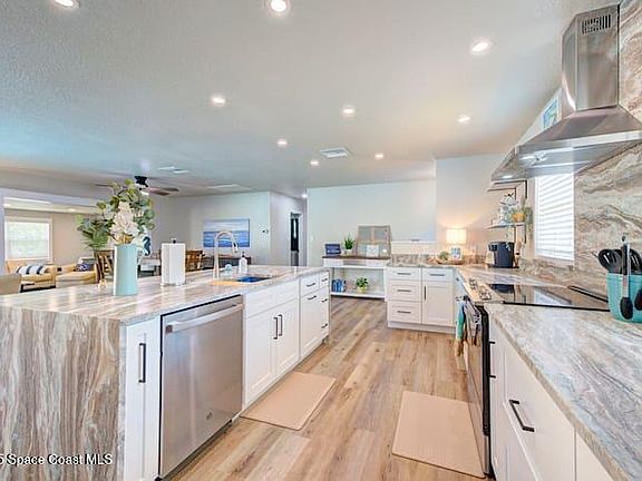 Discover coastal living at its finest in this stunning Cocoa Beach home. Located on a spacious lot, the property boasts a beautifully landscaped yard with a heated swimming pool. Inside, enjoy a well-designed, floor plan featuring a large modern kitchen that creates an inviting space to entertain. The open, bright and airy living room, with multiple bedrooms offers ample space and comfort. With its prime location near local amenities and beaches, this home offers a superb retreat for relaxation and leisure. Home comes fully furnished with everything you need!