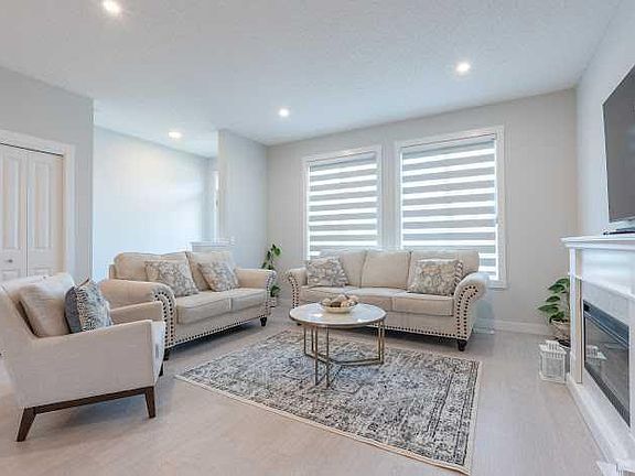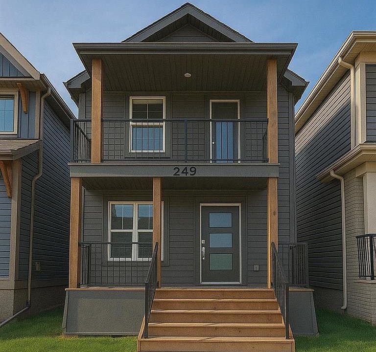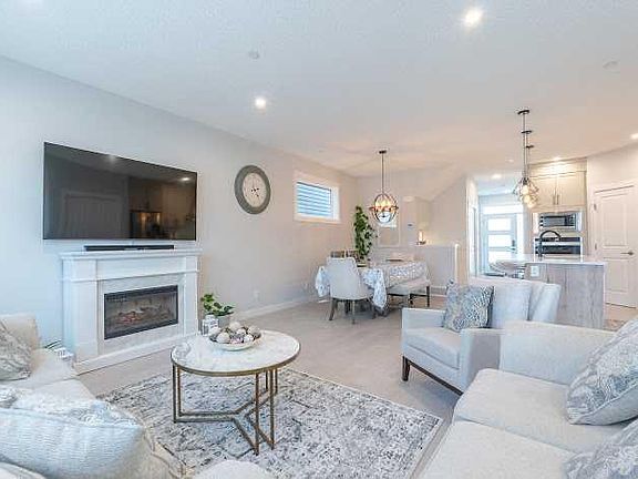 Step into sophistication and elegance at 249 Calhoun Common NE, where timeless design meets modern comfort in the heart of Livingston. This beautifully crafted Carlisle 2 – Farmhouse Elevation offers over 1,820 sq. ft. of refined living space, thoughtfully designed for those who value style, comfort, and community. The welcoming foyer with designer accents leads into a versatile barn door flex room, perfect for a private office or reading lounge, while a tucked-away powder room adds modern convenience. The open-concept great room is anchored by a feature fireplace wall, creating a warm yet luxurious setting for entertaining. The chef’s dream kitchen boasts quartz countertops, full-height cabinetry, a built-in oven and cooktop, high-end stainless steel appliances, and an expansive island designed for both casual dining and elegant hosting, seamlessly flowing into the dining area drenched in natural light. Upstairs, a lavish primary retreat awaits with a walk-in closet, dual vanities, and a spa-inspired tiled shower, along with private balcony access where you can enjoy morning coffee or evening sunsets. Two additional bedrooms with spacious closets provide comfort for family or guests, while a sophisticated bonus room offers the perfect space for movie nights or quiet relaxation. An upper-floor laundry room ensures ultimate convenience. Throughout the home, elegant neutral finishes, crystal lighting fixtures, and dual-shade blinds bring a boutique hotel ambiance into everyday living. Also a side entrance to the lower level, while rear lane access is ready for your future garage or outdoor living oasis. Set in the master-planned community of Livingston, residents enjoy access to the 35,000 sq. ft. Livingston Hub with skating rinks, tennis courts, splash parks, playgrounds, and event spaces, along with expansive green spaces, walking paths, and parks designed to enrich wellness and leisure. Nearby shopping centres, grocery stores, schools, cafes, and gas stations add convenience, while quick access to Stoney Trail and Deerfoot Trail places the entire city within easy reach. This is more than a home—it’s a lifestyle, blending luxury living, modern design, and vibrant community in one of Calgary’s most desirable new neighbourhoods. Welcome to 249 Calhoun Common NE.