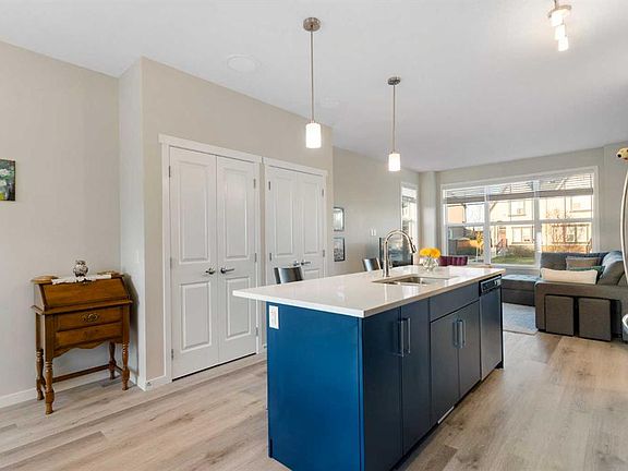 "Open House - Oct 3 4-530p & Oct 4 2-4pm & Oct 5 2-4pm* Welcome to this beautifully finished 3-bedroom, 2.5-bath detached home in the vibrant, amenity-rich lake community of Mahogany. Offering 1,441 square feet above grade and upgraded to 9-foot basement clearance, this home blends stylish design with everyday functionality in one of Calgary’s most sought-after neighbourhoods. Step inside to discover high ceilings on the main and an open-concept floorplan featuring midnight blue kitchen cabinetry, sleek stone countertops throughout, and a premium Blanco Horizon undermount sink. The space is as practical as it is striking, with a front-load washer and dryer conveniently located in the upstairs laundry. The elegant primary suite includes a spacious walk-in closet and a private 3-piece ensuite, while two additional bedrooms provide space for family, guests, or a home office. From top to bottom, the home is thoughtfully finished with a refined, modern touch. The basement can be finished to give a spacious and airy feel with the high ceilings. There is ample room and an egress window for a generous sized bedroom and also the ability to utilitze the existing rough-in for a full bathroom development. Outside, enjoy a low-maintenance front yard, a fully fenced backyard for added privacy, and paved lane access to your oversized parking pad. You're just 1 km from the Mahogany Beach House—offering year-round recreation like swimming, fishing, tennis, paddleboarding, skating (including a 2.4 km skating path), hockey, volleyball, playgrounds, a gymnasium, splash park, basketball courts, and even firepits for cozy evenings. Whether you're an active family or looking for a peaceful retreat in a lake community, this home delivers on all fronts. Book your private tour today and experience the best of Mahogany living!