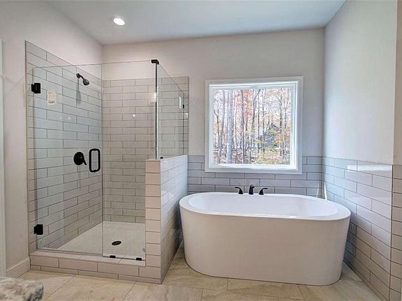 Cedar porch columnsOpen concept floorplanSplit bedroomsArchitectural roof shinglesWalk in closetStone front water tableSoaking tub