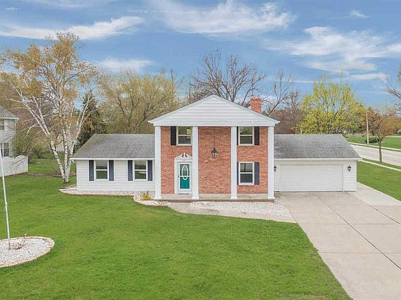 This stately two story home is situated on a large corner lot, in a quiet neighborhood. She offers an updated front entrance door, paint and fixtures throughout, and new tile in the foyer. Featuring 3 bedrooms, 2.5 bathrooms, Large family room with raised nook, Granite countertops and new GE Slate appliances, in the kitchen, and formal dining room with a gas brick fireplace. A finished family room, laundry hook ups, new furnace in 2017, and ample storage shelving, round off the lower level. Master bedroom has two large closets, ceiling fan, on suite offering a walk-in shower and new dual vanities. French doors off of the kitchen, lead out to a new stamped concrete patio to enjoy those warm summer days!