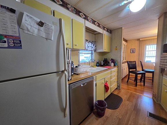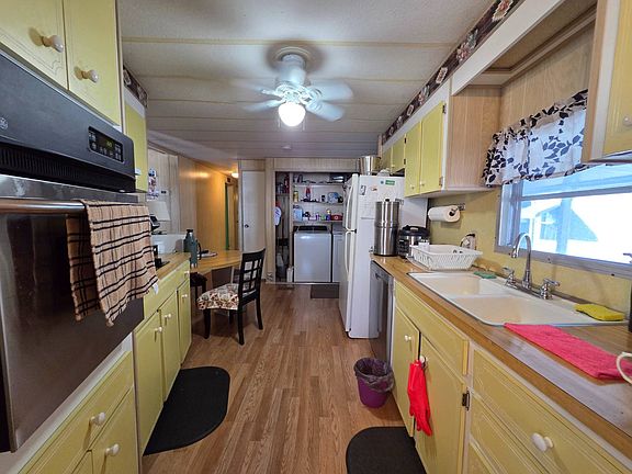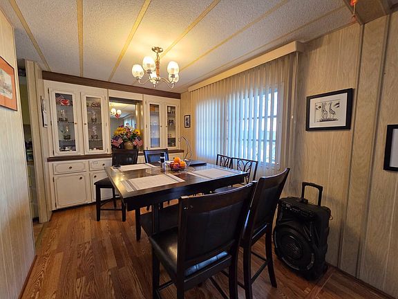 This 2 bed 2 bath home is located in Shangri-La a 45+ Community. The home has aCentral HVAC system, carport, roofover and storage shed. The interior of the home has new sub flooring and luxury viyl plank flooring in the master bedroom both bathrooms and the hallway. The vapor barrier was replaced in 2022, a new washing machine was installed in 2022, all water line plumbing was replaced in 2022. In 2023 the kitchen sink drainpipe was rerouted to the sewer and replaced.The stove was replaced in 2023. The master shower was remodeled in 2024. The mobile home was painted in 2024. The dishwasher and the wall oven were replaced in 2025. Community Amenities include: community organized activities, clubhouse, shuffleboard courts, community swimming pool & laundry room. The lot rent is $830 per month which includes water, sewer, trash and landscaping.