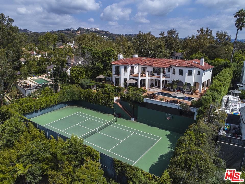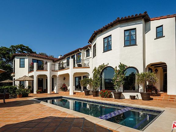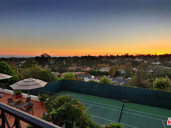 Located on the close-in coveted rim side of a most desirable street, this outstanding property has an impressive front lawn, circular motor court, swimmers' pool, regulation tennis court and vast 180 degree canyon and ocean views. Offering ocean breezes and lots of privacy, this authentic Spanish is set back from the street with very gracious proportions.There is an excellent indoor-outdoor flow for entertaining with many doors leading to patios and spectacular views. The residence was recently renovated and restored with care and sensitivity to period detail but at the highest current building standards. A newly remodeled cook's kitchen with top of the line appliances and an adjacent family/media room, blend traditions with today's smart home technology for systems and security. The enormous master bedroom suite is a luxurious refuge. Each of the other four bedrooms have good scale and newly remodeled en-suite bathrooms. There is a gym and as a bonus, equestrian zoning.