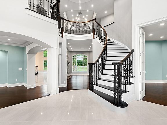 Mesmerizing luxury property that is a magnificent ultra-modern masterpiece. Open and spacious floor plan exudes beauty that is immeasurable. Enter through the awe-inspiring double front doors and step into the soaring 2 story foyer with impressive chandelier and graceful circular staircase and wood and wrought iron railing. Step down onto the elegant red oak wood flooring, and continue through lovely bold arches, into the formal dining room. The kitchen exudes idyllic ultramodern features. Expansive Island and countertops presented with elegant granite. White tile flooring leads to 2 story stone fireplaced family room with coffered ceiling. 1st Floor Master with an elegantly appointed master bath. Cabinetry with white sinks, and sumptuous circular tub designed with perfection. Relax in the warm steam shower accented with river rock flooring. The 2nd level has three other spacious bedrooms, bathrooms, bonus room and much more to be seen!