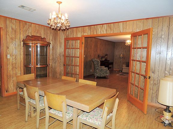 This Spacious 4 bedroom, 2 bath home features walk in closets, formal dining and living, kitchen cabinets galore, and a huge 2nd living room or den with a cozy fireplace. Part of the large covered back porch is screened in. You can sit outside and admire the beautiful back yard and pecan trees. Lots of land to spread out on 8 acres and includes a shop. Such a serene setting!
