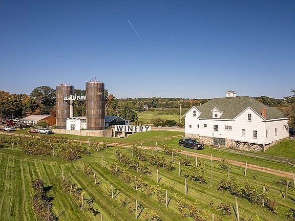 For the first time in 50 years, the iconic “Alfalfa Farm” in Topsfield is offered for sale. Over multiple generations Alfalfa Farm has been operated as a dairy, a horse farm and, for the past 29 years, a successful and award winning winery, tasting room and event venue with bath. Opportunities abound for farm use, equestrian facility, winery or redevelopment. Offered as one 9.14 acre parcel now, the property has potential for ANR division into 4 lots. The property includes the main house with 6 bedrooms and 3 bathrooms, currently configured as 3 rental units. The main barn is architecturally striking and has 9 stalls, work areas and hay loft. The winery has a large tasting room and adjacent outdoor spaces and wine production area. Parking areas estimated for both residential and winery areas. The winery business and related equipment is negotiable for sale with the real estate. Alfalfa Farm offers excellent frontage and easy access to transportation, Boston and Logan Airport.