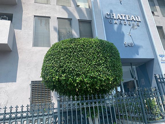 Welcome to your new residence at Chateau Gardens! Enjoy a midcentury style building with plentiful natural sunlight, open interior hallways, secure access, onsite laundry facilities, elevator, underground parking, and a pool. Units have wood flooring, wood beam ceilings, large windows, built in bookcases and granite, tile or quartz countertops. There is on-site management and responsive off-site management. The building is regulated under the Los Angeles rent control ordinance.