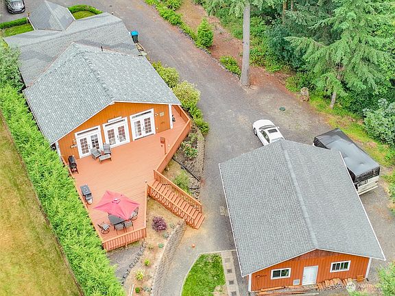 Tucked away and hidden in the hills you'll find this stunning 1700sqft custom home encompassing nearly 5 private and secluded acres. Once you step inside you'll notice the wide open spaces w/gorgeous tile floors, vaulted tongue and groove ceilings, open beams and a kitchen that was built for entertaining. A trio of french doors leads directly to the massive 800sqft deck where you'll enjoy endless sunsets and unparalleled territorial views. A quick stroll to the lower portion of the property and you'll find the 32X28 shop, add. RV parking, garden house, and a custom firepit perfect for those long summer nights. An unbeatable location only 3 minutes to D/T Chehalis, shopping, schools and restaurants. Welcome to your private sanctuary!