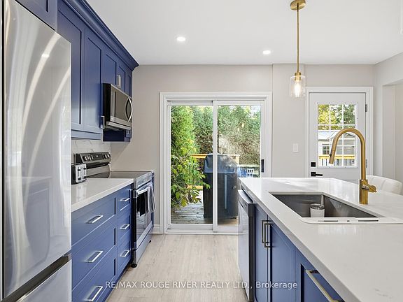 Beautiful fully detached 1.5 story home on a quiet dead end street. This property features a renovated kitchen with vinyl flooring, ceramic backsplash, centre island and a walk-out to a large oversized deck. Living room features vinyl flooring, pot lights, electric fireplace and a bay window. Formal dining room features vinyl flooring and a window. 3 good sized bedrooms. All bedrooms feature vinyl flooring, a closet and a window. Partially finished basement with a large recreation room that has vinyl flooring, pot lights and a window. Cold storage room in the basement. Lots of storage available in the utility room of the basement. Parking for multiple cars. Close to all amenities: schools, shopping and transit.