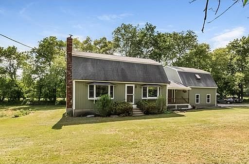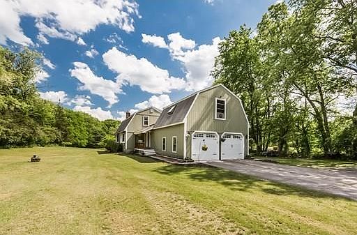 Enjoy this beautiful 3 bedroom Gambrel Cape surrounded by fieldstone walls and flat open field and several mature fruit trees. Perfect for a gentlemans farm and horses. Large corner lot 2 plus acres with privacy. Living room with a brick fireplace, hardwood floor in the dining room and tiled kitchen floor.The kitchen is open to the dining room to create a larger open yet inviting space. Between the main house and the garage is a vaulted ceiling finished family room with access to the deck and patio or the front porch. The two car garage with upper loft offers lots of extra storage.