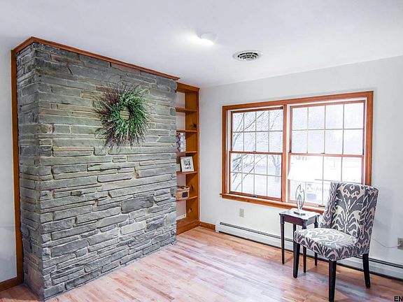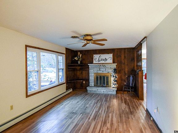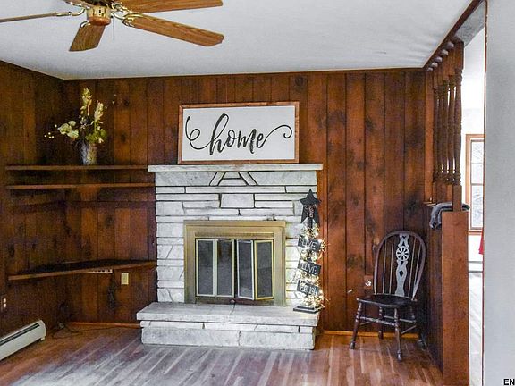 Welcome home to this charming ranch on 1.4 acres! It is move-in ready and features a spacious and open layout with hardwood floors and four large bedrooms. It's charming with a wood burning fireplace with new liner, built-in shelving, as well as French doors that open up to a deck overlooking a spacious and private backyard. New hot water heater and well-maintained heating system. Newer gutters installed. Just a short drive to shopping, restaurants, parks, more! Must see!