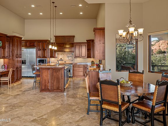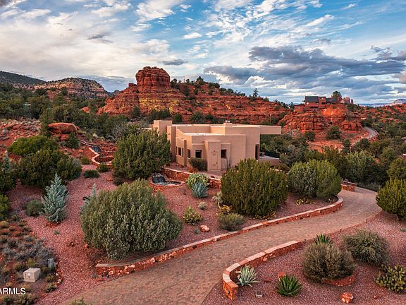 outdoor living, & ideal location with NO HOA restrictions. Easy access to I-17 yet still in the midst of hiking & biking trails & swimming & fishing in nearby Oak Creek. Flowing from its own red rocks, the residence features a delightful entry waterfall. Inside you find exquisite appointments: Travertine throughout, Chef's Dream Kitchen, & Electronic Wall of Glass receding into the wall, providing a seamless transition to the marvelous View Deck. Elevator to the lower level accesses an astounding Home Theater; Wine Cellar, comfortable Game/ Family Room, & spacious 3-car garage.SEE MORE for full list of Amenities