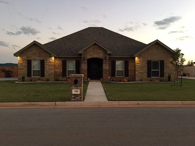 Remarkable home built in 2016 with 4 bedroom 2 baths and 2,076 square feet in the Wylie ISD. This home is custom with many values, including 8 ft Garage door , no city Taxes but all city services including suddenlink cable, AEP Electric, Class 4 Hail resistant roof, Foam insulation, yard is fenced with sprinkler system and landscaping. Beautiful view of Potosi Hills, no neighbor behind house, deck with pool. Covered patio, Interior has custom trim and crown molding, is an open kitchen-living concept with wood burning fireplace, decorative lighting, tile in common areas and carpet in bedrooms. Master has double sinks, walk in shower, garden tub and large closet with built ins. Easy to see call or text. 325-733-7574 Will pay Agent 2%.