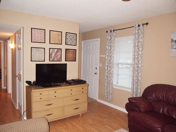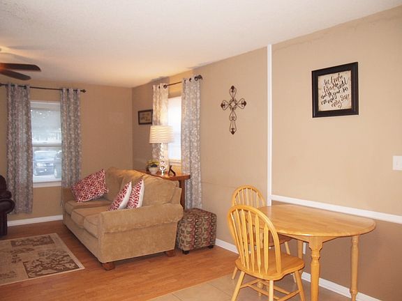 This home is absolutely adorable, well maintained and just waiting for you! This 3 bedroom home has everything you are looking for -- convenient location, spacious yard, cul-de-sac street, minutes to shopping, restaurants and Interstates. Enjoy calm evenings on the rocking chair front porch that overlooks the well manicured landscaping. As you enter, you are welcomed into the spacious den. You will enjoy this open entertainment area and eat-in kitchen. Spacious bedrooms with well organized closets. Neutral tan paint colors throughout - will go with all decor. No painting needed! Extra storage room outside that's attached to the house can be used for seasonal items, gardening/lawn tools -- whatever you desire. This home qualifies for USDA 100% financing. Call TODAY to schedule a showing!