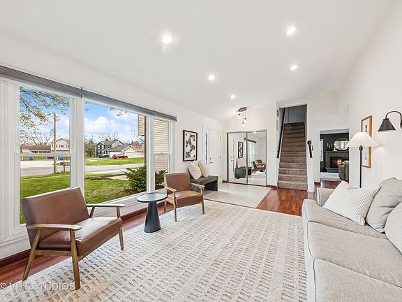 OOO LA LA! This one is DREAMY!!! Run to this beautifully maintained 3 bedroom plus den, 3 full bath home in popular Butterfield subdivision. There are tons of updates to enjoy and the swank factor is off the charts! Relish in the home's wide open floor plan that exudes a comfortable, modern feel that's hard to find and easy to love. All the newer (2018) oversized windows flood this home with natural light. It's bright even on cloudy days! The spacious living room with dramatic vaulted ceiling and trending light fixtures welcomes you inside. The updated kitchen boasts white cabinets, granite counter tops and stainless steel appliances. It flows right into the family room with gas start fireplace for easy entertaining. A sliding glass door gives way to the back yard with an expansive concrete patio, a stone inground fireplace complete with lava rocks, and a newer (2024) maintenance free privacy fence. The private main level den is perfect for working from home and the main level laundry is super convenient. The newer (2023) washer and dryer stay with the home! Newer modern tile was installed at the entry in 2020 and laminate floors cover the remainder of the first floor. Upstairs, you'll find three bedrooms and two updated bathrooms. The primary suite with vaulted ceiling is HUGE and the private updated bath (2020) rivals any spa. The main level bath was fully remodeled in 2020 and the upstairs hall bath was refreshed at that time, too. They all look amazing! There's a newer a/c unit (2019), newer water heater (2018), and the furnace's blower motor and capacitor were replaced in 2021. The home was freshly painted in 2024 and many modern light fixtures were installed in 2025 so all you need to do is drop your furniture and enjoy all this vibrant community has to offer. You can start by plucking cherries off the cherry tree in your front yard and making cherry pies, jams, jellies, etc. All the neighbors are all jealous of this tree! Or head to Butterfield Park just a few blocks away to play a game of basketball, baseball, walk along the path, or just hang out. And the location? AMAZING! You're just minutes to I-88, the Rte 59 train, Illinois prairie path & highly acclaimed District 204 schools. Metea Valley High School is just down the road! Butterfield subdivision doesn't have any monthly or annual assessments which makes it super affordable. Do the math and check the comps. This one's an easy choice. What are you waiting for???