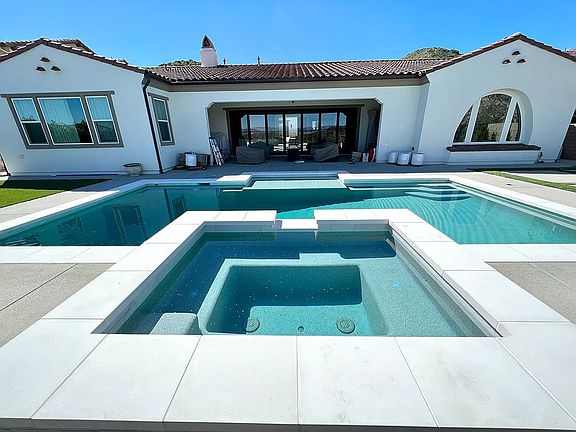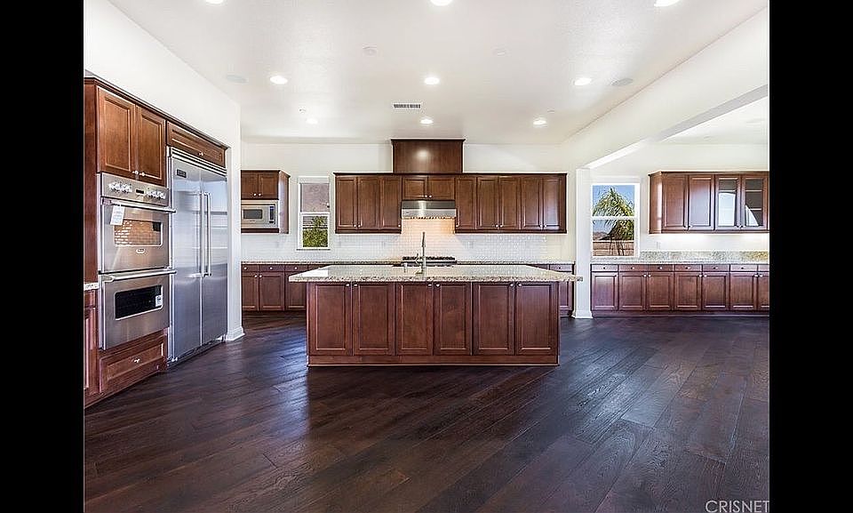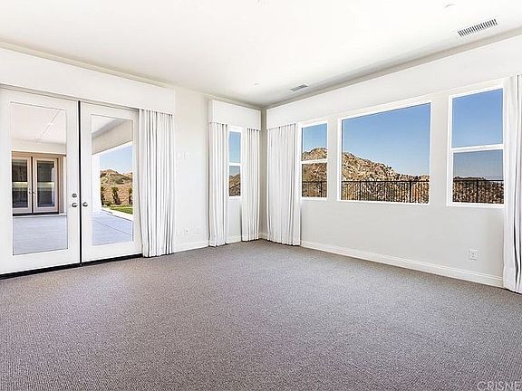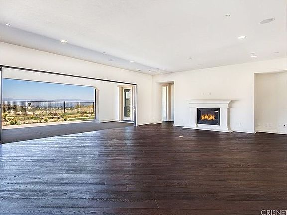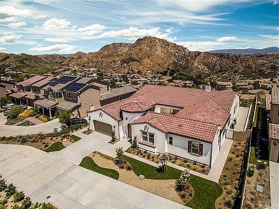 New premier turn-key one-story Modern Spanish Fusion Estate with breathtaking jet liner views sitting atop Southern Oaks in Stevenson Ranch. The main entrance leads to an open-air courtyard featuring weather-resistant imported porcelain tile making a grand statement. Located on a cul-de-sac, this elegant 5 bedroom, plus office, 4 bath home has never been lived in and all appliances have never been used. This stunning model sharp gem was exquisitely and professionally designed to perfection by ArcForm Design of Beverly Hills. Boasting luxurious contemporary upgrades throughout, entertain in the light filled open floor plan featuring La Cantina bi-fold all-season door system to overlook onto the awe-inspiring view. The sprawling floor plan affords a magnificent great room anchored by a gourmet chef's kitchen adorned with professional Viking kitchen appliances, large butler's pantry, large separate pantry, instant hot water system throughout, organic engineered hardwood floors, organic wool carpets, organic Italian cotton blackout curtains and valances in master, imported hand-laid tile in master bath, imported porcelain tile in guest baths and laundry, custom weather-resistant exterior underground drainage system, new & unused 2017 Maytag steam clean, High efficiency washer & dryer, central vacuum system, and only the finest features throughout this pristine masterpiece. This is a rare opportunity that you won't want to miss.