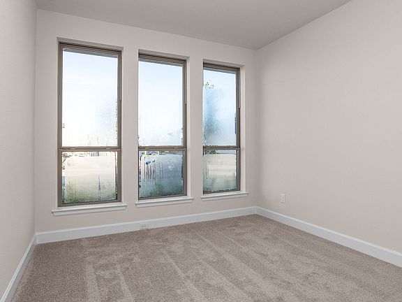 Extended entry with 12-foot ceiling leads to open kitchen, dining area and family room with 10-foot ceilings throughout. Kitchen features center island with built-in seating. Family room features wall of windows. Primary suite with 10-foot ceiling and wall of windows. Dual vanities, garden tub, separate glass-enclosed shower and large walk-in closet in primary bath. A guest suite with private bath adds to this four-bedroom home. Covered backyard patio. Mud room off two-car garage. Representative Images. Features and specifications may vary by community.