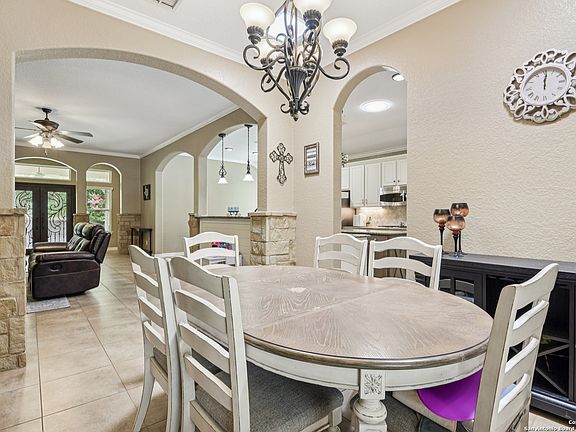 ***Priced to sell quickly*** This 4-bedroom, 3.5-bath home is located in the welcoming community of The Bluffs, offering controlled access for added peace of mind. The open floor plan includes charming architectural details such as archways and crown molding that add character throughout the living spaces. The spacious living room features a fireplace and access to the backyard, creating a natural flow into the kitchen and breakfast area. The kitchen is equipped with stainless steel appliances, gas cooking, double ovens, a pantry, and generous counter space and cabinetry. A formal dining room offers additional space for meals and gatherings. All bedrooms are conveniently located on the first floor, including a split primary suite with its own private bath. Upstairs, you'll find a large second living area and a full bathroom-ideal for a game room, play space, or home office. The backyard features a covered patio, a sizable lawn, and mature trees. Conveniently located near community amenities, an elementary school, and major highways, this home also offers quick access to The Rim and La Cantera. Schedule your tour today and see all this home has to offer!