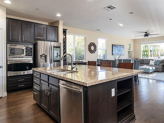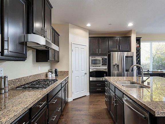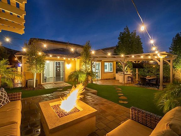 NEW OWNED SOLAR! MAIN FLOOR MASTER BEDROOM! Lives like a single story! Exceptional 4 bedroom + loft home located on a cul-de-sac in the gated community of Valencia West Hills. The main level is warm & welcoming with a fully updated kitchen featuring stainless steel appliances, granite countertops, wine fridge & LED lighting. A walk-in pantry keeps all of your cooking essentials organized while a big center island provides additional serving and prep space. The flowing floor plan offers a Great Room concept where the kitchen opens to the comfortable family room. Upgraded fireplace complete with a stone surround and built-in shelving. A luxurious master suite is private & relaxing with sliding glass doors leading to the backyard. There is a main floor guest room with a private full bathroom. The upper level offers 2 spacious guest rooms with large closets that share a hall bathroom. A loft area offers excellent flexibility & can easily be a play area or home office. The private backyard was designed for entertaining w/ a built-in BBQ island & covered dining area. A raised fire pit offers plenty of room for seating & beautiful views of the surrounding hillside. The front and back yards feature low-maintenance Astroturf surrounded by colorful gardens. The attached 2-car garage is wired for an electric car charger and offers overhead storage and an epoxy floor finish. Located in the gated community of Valencia West Hills within walking distance of award-winning schools!