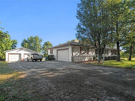 *Priced below current appraisal....Discover this charming 10-acre property located South of Pleasant Hill featuring a spacious 3-bedroom home with 3 full baths and 2 half baths. Walk-out basement, enclosed front porch, den, formal dining, flex space and main floor laundry. The property boasts a versatile 30x50 barn, a serene pond, a fabulous garden spot that can be watered from the existing well for a bountiful harvest....perfect for outdoor activities and relaxation. There is a 2 car attached and 2 car detached garage providing ample storage space, while the two masonry fireplaces add cozy charm to the living areas. Enjoy entertaining on the deck, ideal for gatherings. The yard is fenced with additional fencing for livestock, making it perfect for both family living and farmstead comfort. Don’t miss this unique rural retreat located in Pleasant Hill School District!