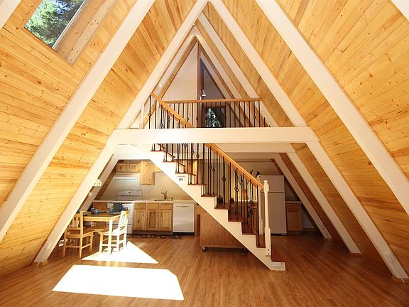Ready to fall in love? This amazing cedar-sided A-frame cabin is completely updated and ready for new owners! Soaring vaulted open beam ceilings and tons of windows lets Mother Nature come on in do her thing during all four seasons. On the main level you'll find a cozy living room with attached deck, hickory cabinetry & quartz countertops in the kitchen with everything you'll need to feed the crew, a bedroom with backyard access, a full bath and a laundry/mud room, also with outside access. Upstairs there's a loft with views of the native flora, a half bath and another beautiful bedroom with sky high ceilings. You'll appreciate the radiant floor heat, beautiful dormer windows, and well-placed skylights. Escape to the backyard for BBQs or a relaxing evening by the fire pit, or take advantage of the front deck for stargazing and your morning cup of joe. Underneath there's a large clean and tidy storage area for your toys and tools. Located in Big Trees Village, you're under an hour's drive to Bear Valley ski resort, Lake Alpine, and the nearby towns of Arnold and Murphys. Come take a look before its gone!