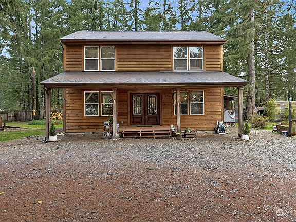 Beautiful home brimming W/potential on 1.16-acre lot! Step inside to beautiful front doors & inviting atmosphere. Hardwood-inspired LVP floors throughout entry. Open kitchen is a chef's dream, boasting granite counters & SS apps that STAY-W/ample cabinetry, you'll have plenty of storage! Relax in the living rm W/views of the expansive property. Main floor W/full bath ft updated vanity. Retreat to the primary suite, showcasing vaulted ceilings, wooden beam, spacious WI closet & remodeled ¾ bath W/tiled WI-shower. 2 addtl bdrms up. Zoned for mixed use/commercial! RV parking area, massive 30x60 shop & addtl outbuildings for all your storage needs. Minutes to DT Shelton, W/shopping, dining, & entertainment- easy commute to Olympia & Bremerton