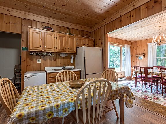 Tucked into a protected cove on North Bay, this offering includes two cottages with 200'of shoreline on Raquette Lake that you can drive to. The larger cottage "Hemlock" has two bedrooms and two baths, an eat in kitchen, dining room and mud room with laundry. The living room has a fireplace, and there is a beautiful screened porch overlooking the lake. The guest cottage nearby, "Juniper" is a studio with kitchen, bath with shower and large room for sleeping. The living room has a fireplace and there is heat. The screened porch is perfect for sitting and enjoying the lake. A single garage offers storage for equipment. It comes with a boat hoist and dock and some furnishings. The ground is a level walk out to the beach on the main cottage. Joining the North Point Association is optional, but there is a sand beach, a large dock and boat launch owned by the Association and used by the members.