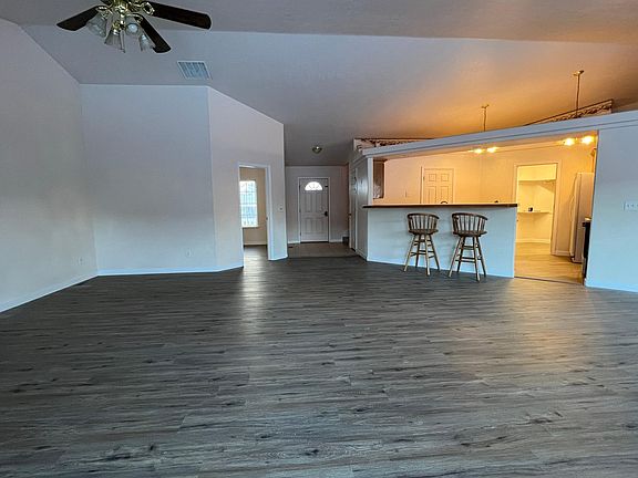 Expansive open floor plan with a fenced backyard