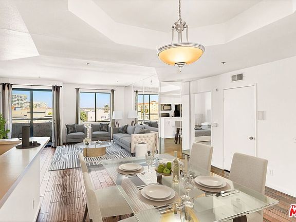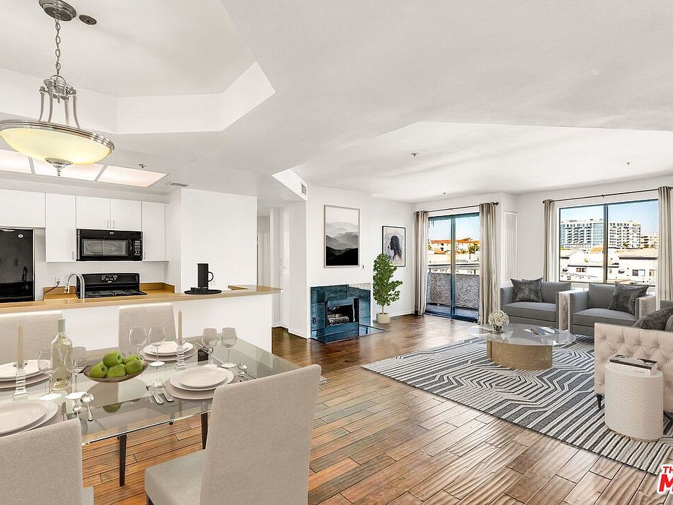 Spectacular front-facing, corner Penthouse residence in West LA. This stylish 3 bedroom, 3 bathroom unit has only one common wall and is quiet, move-in ready and flooded with natural daylight. Open and airy floor plan has great flow and includes dining and living "great room" that is open to the inviting kitchen w/ spacious eating bar. Enjoy the sunlight + fresh air breezes from the spacious front-facing balcony. Oversized private, primary suite features an elegant bathroom with dual sinks, jetted tub, stall shower and large walk-in closet. Other features include 2 large guest bedrooms, one of which is en-suite, rich hardwood flooring, central Heating/AC, in-unit laundry & fireplace. Well-maintained building includes 2 side-by-side, gated parking spaces, storage, guest parking + a common rooftop deck with spa and panoramic city views. Great location in the heart of the Westside near the Metro Expo line with easy access to Santa Monica, shops and restaurants, the beach and Downtown LA.