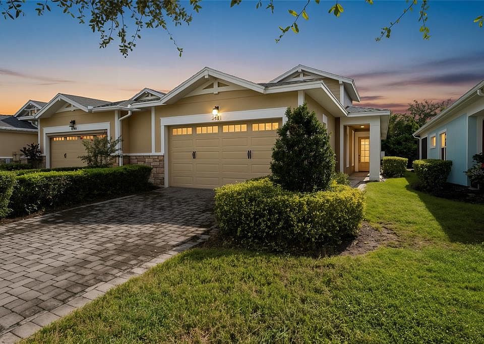 One or more photo(s) has been virtually staged. Welcome to Your Dream Home in Del Webb Twin Lakes! Step into this stunning and freshly painted Daytona floor plan located in the highly desirable gated 55+ active lifestyle community of Del Webb Twin Lakes. This breathtaking home blends style, comfort, and functionality, making it the perfect retreat for modern living. Interior Highlights include Spacious & Elegant Design – Gorgeous wood plank flooring and crown molding flow throughout the home, creating a super sharp look. Gourmet Chef’s Kitchen – Featuring 42" custom cabinets with decorative molding, stainless steel appliances, granite countertops, a walk-in pantry, stylish pendant lights, and a chic chandelier—perfect for entertaining! Bright & Open Living Room – Large sliding glass doors open to the screened lanai, complete with a custom ceiling fan, ideal for morning coffee or evening relaxation. Luxurious Primary Suite – Enjoy the tray ceiling, elegant crown molding, soft natural lighting, and a spa-inspired en-suite bath with: Frameless glass shower Designer diamond-patterned tile flooring Oversized showerhead & custom tiling Double vanity with granite countertops, brushed nickel fixtures, and ample cabinetry Spacious carpeted walk-in closet, Additional Living Spaces, Private Study/Den – Perfect as a home office, hobby room, or even a potential third bedroom. Guest Bedroom & Bath – Thoughtfully designed with ceiling fans, faux wood blinds, and stylish finishes for ultimate comfort. Laundry Room – Equipped with lower cabinets, granite countertops, and tile flooring for optimal convenience and storage. Resort-Style Community Living Del Webb Twin Lakes offers world-class amenities designed to keep you active, social, and entertained: Three Pools – A resort-style pool, lap pool, and a third pool by the Carriage House. 20,000 sq. ft. Clubhouse – A beautifully designed hub featuring state-of-the-art facilities. Fitness & Recreation – Fully equipped fitness center, flex room, tennis courts, pickleball courts, and a putting green. Outdoor Adventures – Enjoy walking trails, fishing, and even pontoon & Jon boats on scenic Live Oak Lake. Vibrant Social Life – A calendar full of events, activities, and clubs ensures there’s always something fun to do.