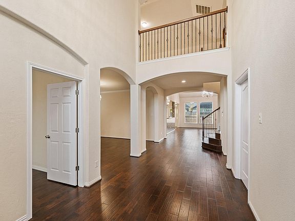 Formal dining roomPrivate officeSoaring ceilingsSpacious game roomLarge islandWrought iron stairsJack-and-jill bath upstairs