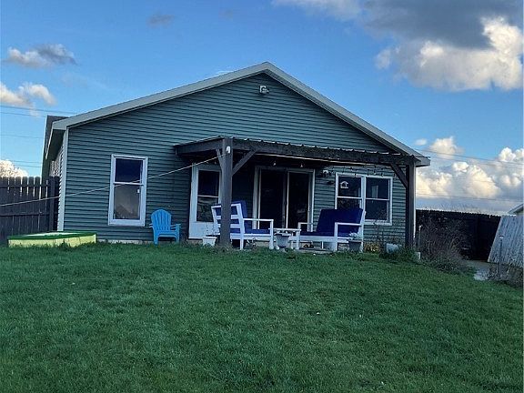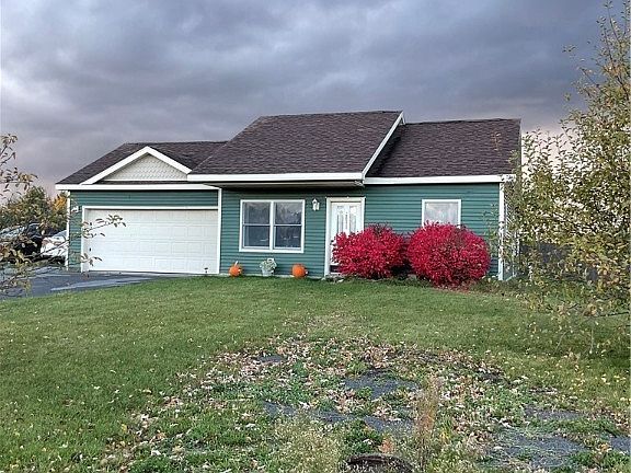 Looking for low maintenance one story living-look no further. You’ll love the open concept living/dining area with vaulted ceilings. Cozy but fully equipped kitchen with a fresh facelift. This ranch home boasts 4 bedrooms and 2 full baths. Wait until you see the primary suite! Huge primary bedroom with beautiful accent wall, large walk-in closet,sliding doors to back yard, and attached en suite bath not to mention all the natural lighting. Located just minutes from Fort Drum and Watertown for a quick commute. General Brown School District. Large fully fenced yard that backs up to Willowbrook Golf Course. Garage has in floor heat