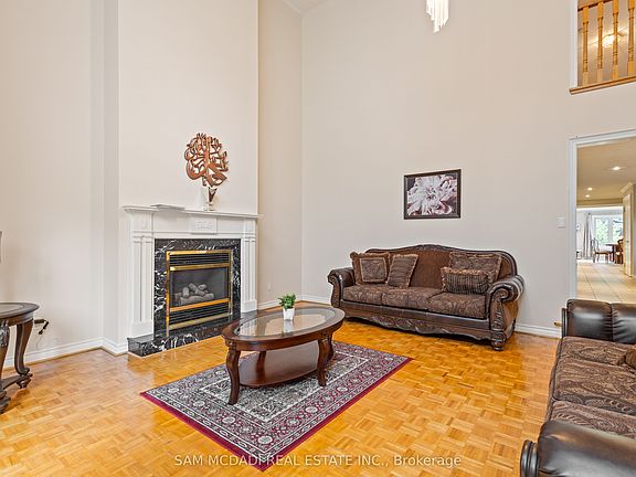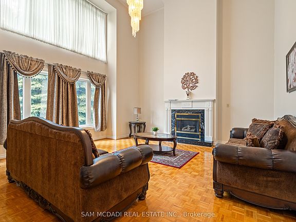Perfectly positioned in Central Erin Mills, just across from Erin Woods Park, this executive family residence spans over 6,500 sq ft of finished living space designed for discerning families to connect and call home. Step directly into the great room, where you're greeted by 22-ft ceilings and dramatic windows that flood the space with natural light. The family room, anchored by one of three fireplaces, invites cozy nights in. The kitchen is chef-ready and family-approved, featuring quartz countertops, upgraded cabinetry, stainless steel appliances, and a water filtration system. Off the breakfast area, a walkout leads to a sunny backyard framed by mature trees, both private and peaceful. The main floor also offers a dedicated home office with LED lighting and a laundry room with direct access to the 3-car garage. Upstairs, the primary suite is a retreat in itself, with an oversized walk-in closet and a spa-like five-piece ensuite. The newly finished walkout basement feels like a home of its own, complete with a full kitchen, two bedrooms, two full baths, and separate laundry, ideal for in-laws, guests, or passive rental income. With three fireplaces, and thoughtful finishes at every turn, every inch of this home welcomes you in. Just minutes from Erin Mills Town Centre, top-ranked schools, Credit Valley Hospital, UTM, the GO Station, major highways, and everyday essentials.