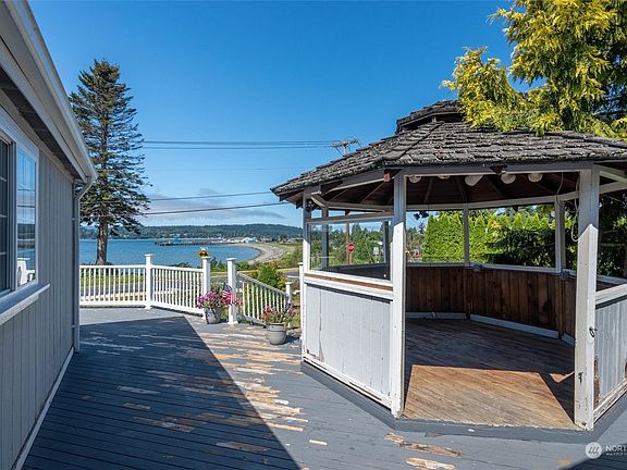 Watch the eagles soar above as you sit back and relax on your wrap-around deck, soaking up the stunning unobstructed water views. A fabulous find on the Lummi Indian Reservation. Vaulted ceilings combine with oversized window banks to create a light & bright environment. Spacious floor plan boasts separate Living & Family rms. Open Kitchen is completed with island counter, full tile back splash, & pantry. French doors open into the Primary Suite hosting walk-in closet & private bthrm with soaking tub. With some updated flooring, you'll have yourself a gem! A perfect storage solution in detached 2car garage, walls wrapped with shelving (plus another shed!). Take a stroll across the street to the private community beach. Ah, this is the life!