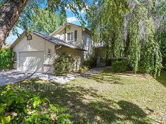 This 4 bedroom 3 bathroom home offers comfort and convenience in a beautiful setting surrounded by large mature trees. This home features a bright living area with a cozy fireplace, a functional kitchen with ample cabinet storage, a dedicated dining space, and a convenient laundry room. Also on the lower level is one bedroom and a full bathroom, perfect for guests or flexible living arrangements. Upstairs, the primary suite stands out with vaulted ceilings, a walk-in closet, and an ensuite bathroom complete with a relaxing soaker tub and separate shower. Two additional bedrooms and another full bathroom upstairs provide plenty of room for family or guests. With multiple living spaces, thoughtful design, and a backyard framed by established trees, this home offers both comfort and practicality.