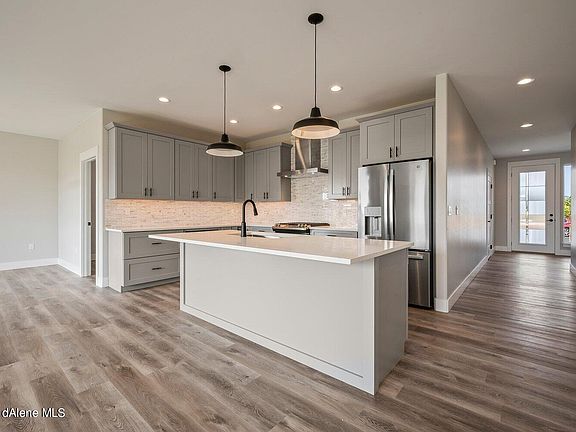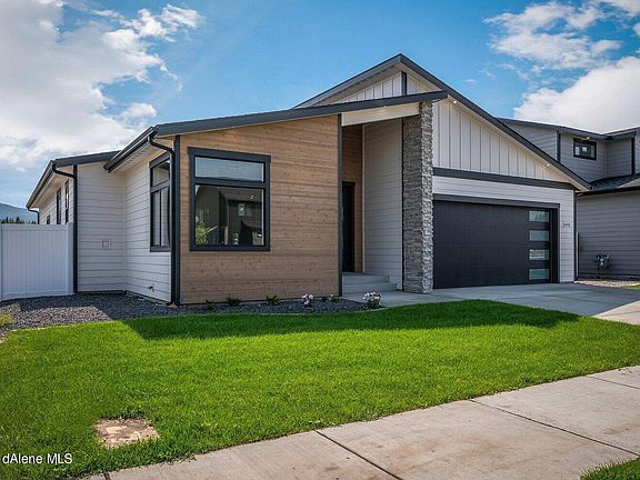 COME CHECK OUT this Gorgeous Modern single story Home w/3 bedrooms, 2 baths, office and large 2 car garage. Upgraded finishes include, Quartz countertops throughout, tile in bathrooms and laundry room, Luxury vinyl plank throughout main level. WASHER, DRYER & REFRIGERATOR are INCLUDED! The kitchen offers an open concept design w/ large island, spacious pantry and a gas range. Full yard landscaping w/ sprinklers is installed. FULLY FENCED backyard! This CUSTOM home is centrally located between Spokane and Coeur d Alene offering great commute, southern exposure, and Breathtaking mountain views! This home is loaded with UPGRADES and MOVE-IN READY! Come check it out!!!