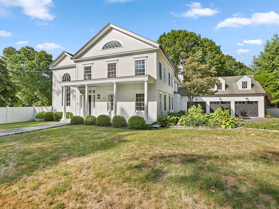 Transport yourself back in time in this classic Greenfield Hill colonial! This renovated 1817 stunner offers over 5,000 square feet of living space - complete with studio apartment, a light & welcoming sunroom and an amazing gunite pool with waterfall! Mature plantings and trees abound on this spacious, rolling property. A dramatic, two-story front entry with classic staircase welcomes you home. Hardwood floors and high ceilings give even more character and elegance to the home. A more contemporary, open floor plan runs throughout the first floor - highlighted by a chef's kitchen, family room and formal dining room (both with fireplaces), living room, den, office and more! The primary bedroom suite with elegant bath and walk-in closet punctuates the fantastic second floor, with three additional bedrooms. The home is perfect for hosting parties and overnight guests. An apartment (w/separate entrance) over the garage, an attached three-car garage and charming front porch are further features of this pastoral, private & relaxing home and property. Enjoy everyday or on the weekends! Option to rent the property with the on-premises barn! The two-story barn adds even more to your experience. It has three large stalls - perfect for trail rides a stone's throw away at The Fairfield Bridle Trails and Brett Woods! Additional riding opportunities at the nearby Fairfield County Hunt Club. Close to Fairfield & Westport shopping, restaurants, entertainment & commuting