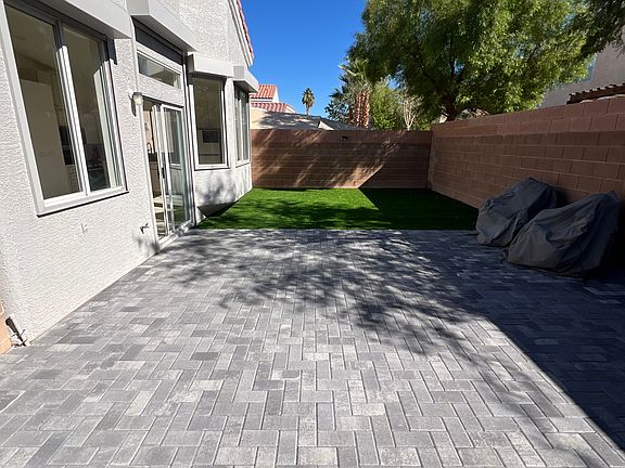 Low-maintenance turf backyard with raised privacy wall and no front neighbors