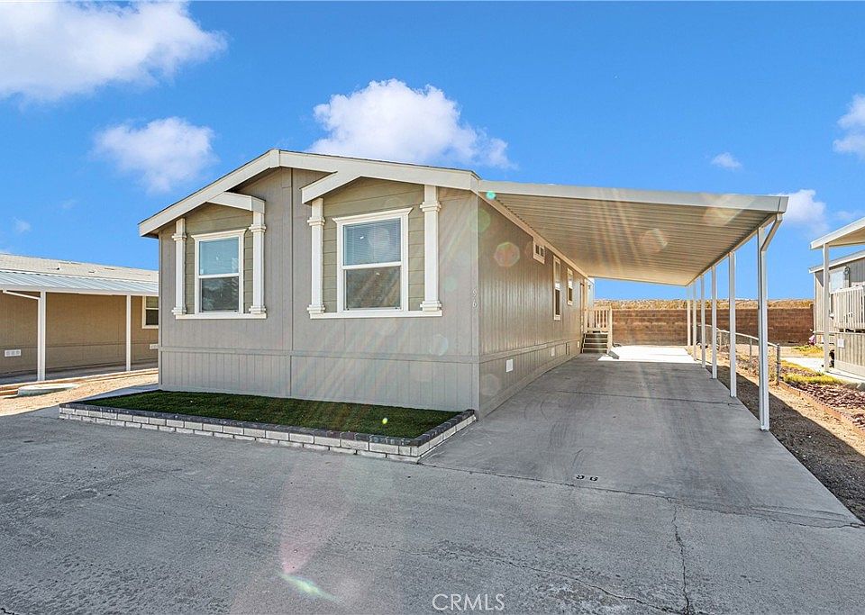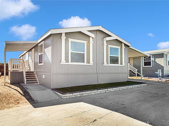 Recent Price Reduction!! Family Friendly Park!! Move-In Ready!! From the Front Patio Walk into a Double Wide Mobile Home. Open Living Room Space with a Ceiling Fan. The Kitchen offers plenty of Cabinet Space and Island. The Refrigerator, Dishwasher, and Stove are Included. There is a nice size Dining area. Split floor plan with 3 bedrooms and 2 baths. The space has been very well maintained. Built-in 2021!! The Master Bedroom offers a Walk-in Closet and an attached Private Bathroom. The other rooms are spacious with carpet flooring. There is also a laundry room with extra storage and an exit to the back carport. Parking space for 2 cars. The Mobile Home is in an all-ages park and has a community Pool and Spa.