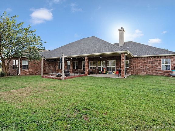 Full brick home on nearly 10 acres! With 3577 sq ft (source from courthouse records) of living space, this property offers room for everyone. Built in 2006, the home features 2 living areas, a formal dining room, and a butlers pantry. The kitchen is designed with function with abundant cabinets and counter space with a separate pantry. The split-floor plan highlights a massive primary ensuite, while the living room has a wood burning fireplace. Additional features include a 3 car garage with an in home safe room, a long circle drive, and a covered back porch for those prairie views. Newer updates include one of the HVAC units, dishwasher and the Roof replaced in 2020. With 5 bedrooms (or 4 plus a hobby room or office) this house is the 1 for large families or perfect for the in-laws to move in!