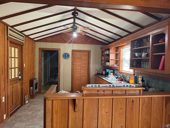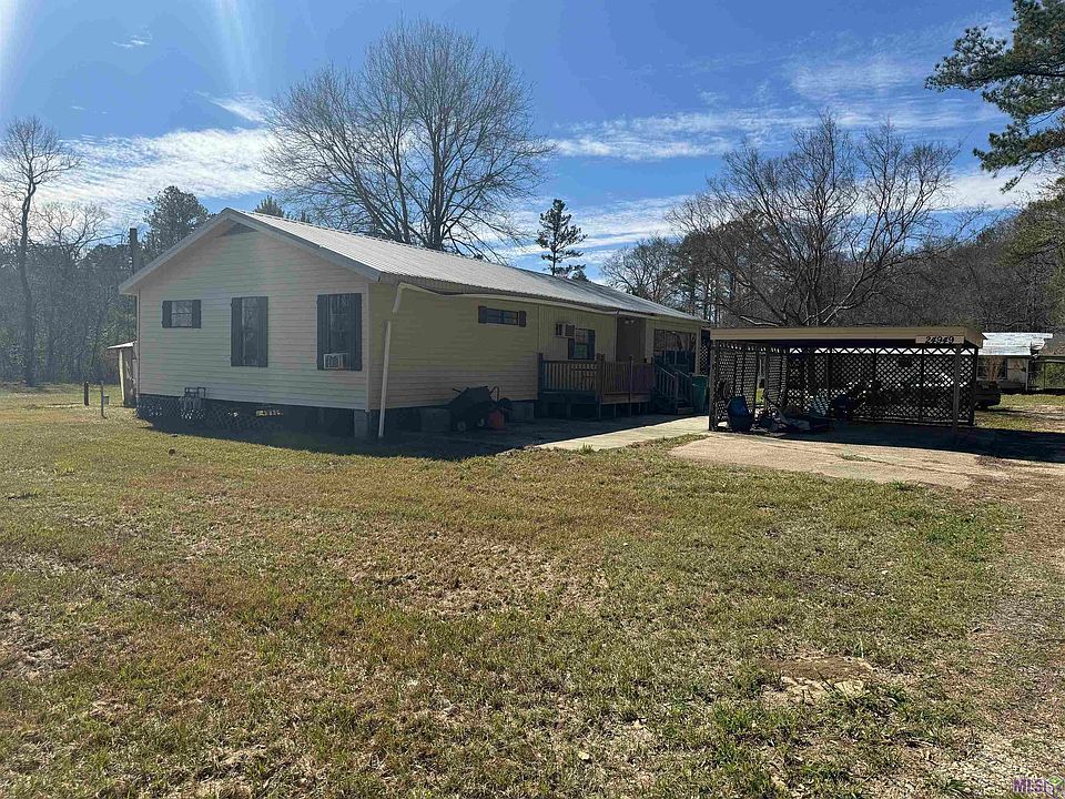 This two-bedroom house with two full bathrooms features a spacious living room and master bedroom. The bonus room attached to the master is perfect for a nursery, office or craft room. You will enjoy plenty of natural light in this house, which has a vaulted ceiling in the kitchen area and lots of cabinets . However, it is worth noting that the house needs some work to bring it back to life. It sits on over a 1/2-acre lot, located far back from the highway. It is cooled by window units and heated by wall units. You can relax on the large covered side porch. There is also a two-car covered parking area in a detached carport. The location is convenient to I-12 or Hwy 16 for your commute.