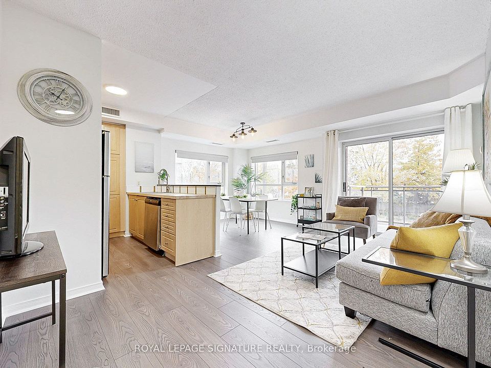 Welcome to Suite #206 at the highly sought-after Glen Lake Condos! Conveniently located between High Park North, The Junction & Roncesvalles, this bright and spacious 645sqft corner unit offers the perfect blend of convenience, urban living & community charm. Many recent improvements throughout! Brand new laminate flooring & baseboards, new butcher block countertops & sink, new cabinet doors, new light fixtures & fresh paint! Featuring an open concept kitchen, living & dining area which is perfect for entertaining guests or just kicking back and relaxing. Kitchen includes stainless steel appliances, new countertop & sink, backsplash & functional breakfast bar and the adjoining living room provides a walk-out to the private balcony. The other side of the unit encompasses the bright & airy bedroom which features a large closet w/ floor to ceiling mirrored sliding doors & conveniently right beside (basically an ensuite) is the 4pc washroom. 1 underground parking space & 1 storage locker included! The amazing location and proximity to neighborhood amenities makes day to day errands a breeze. Short walk to many great restos, bars, retail, parks & trails and much more. Very quiet & friendly boutique building offers; concierge, gym, party room, Bbq area and visitor parking. Easy public transportation with immediate access to streetcars, subway & the UP Express providing quick access downtown or to the airport. Don't miss out!